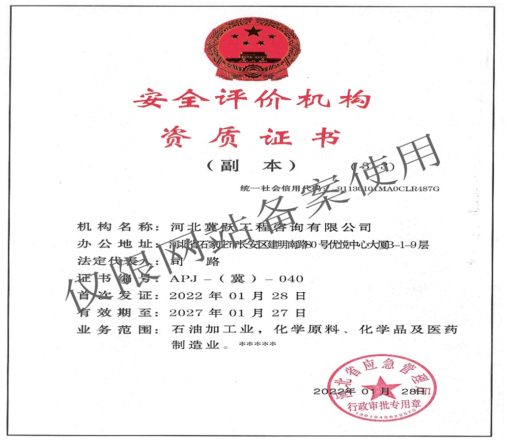 • 安全評(píng)價(jià)機(jī)構(gòu)資質(zhì)證書